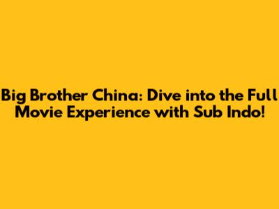 Hey movie buffs! Are you ready to dive into the world of Big Brother China? We're talking about the full movie experience, complete with Sub Indo (that's Indonesian subtitles, for those not in the know!). This article is your one-stop shop for everything you need to know to enjoy this film. We'll explore where you can find it, what makes it worth watching, and why the addition of subtitles can make all the difference. Get ready to be entertained, because we're about to explore the ins and outs of this film and why it is trending.