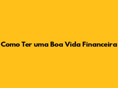 Como Ter Uma Boa Vida Financeira
