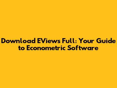 Download EViews Full: Your Guide To Econometric Software
