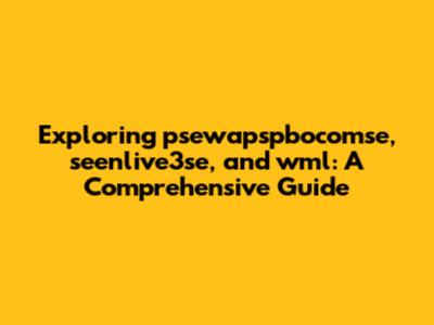 Exploring Psewapspbocomse, Seenlive3se, And Wml: A Comprehensive Guide