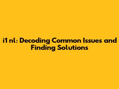I1 Nl: Troubleshooting Common Issues And Finding Solutions
