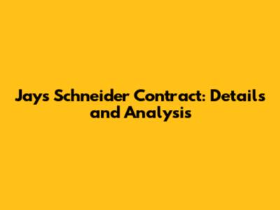 Jays Schneider Contract: Details And Analysis