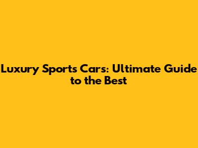 Luxury Sports Cars: Ultimate Guide To The Best